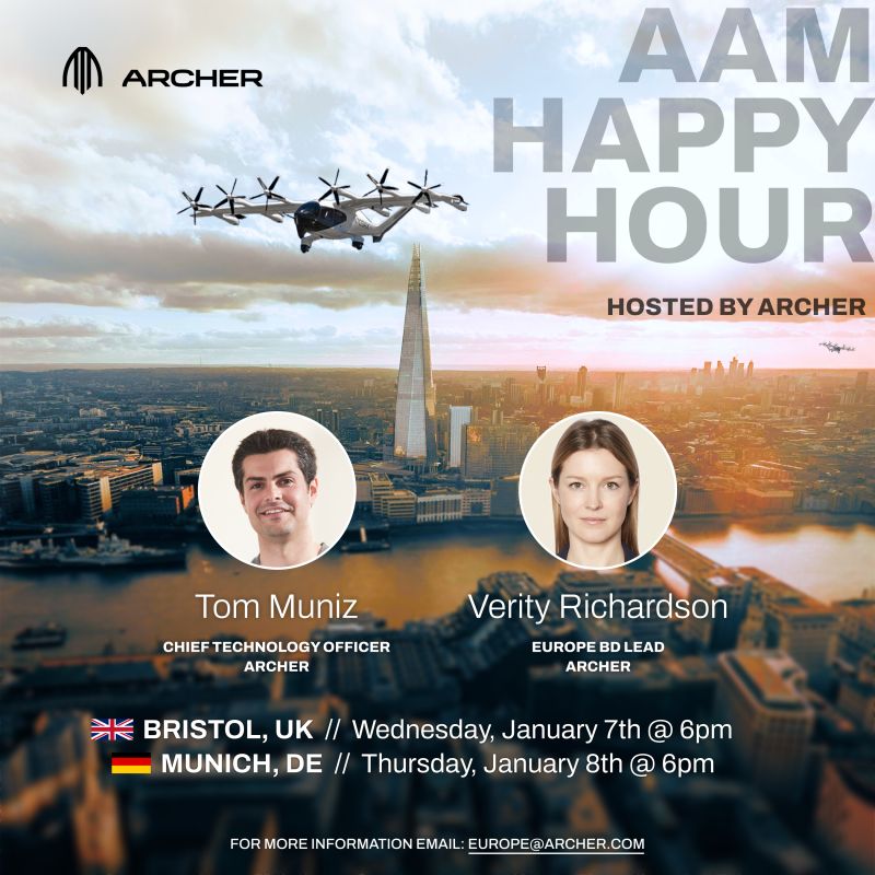 Archer Aviation announced a series of informal, happy-hour-style networking events in the United Kingdom and Germany, aimed at engineers interested in learning about the company’s advancements, its growth in Europe, and the career opportunities available within its team.