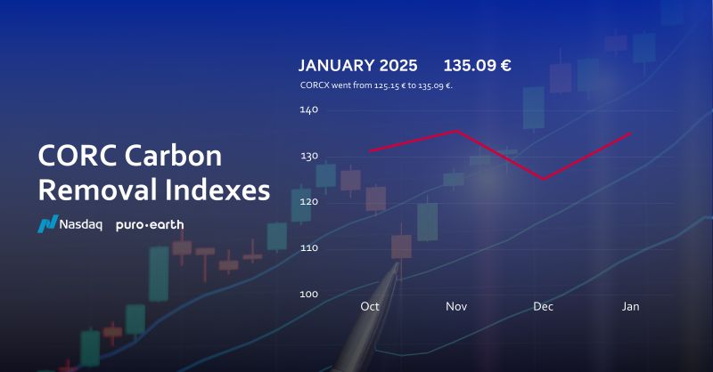The CORC Carbon Removal Price Index closed January 2025 at €135.09, up from €125.15 in December 2024.