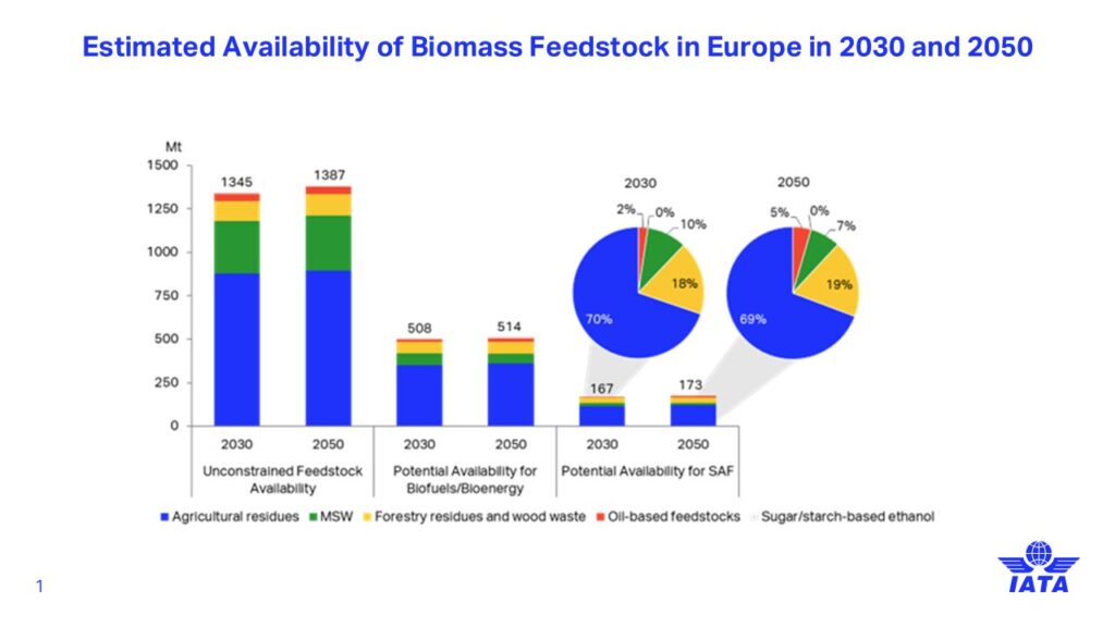 IATA’s latest Global Feedstock Assessment highlighted that sustainable aviation fuel (SAF) will be responsible for around 65% of the emissions reductions aviation must achieve by 2050, requiring approximately 500 million tons of SAF globally. In this context, Europe stands out for its readiness and initial capacity to produce SAF, thanks to robust agricultural and forestry sectors, advanced waste management systems, and well-established collection networks.
